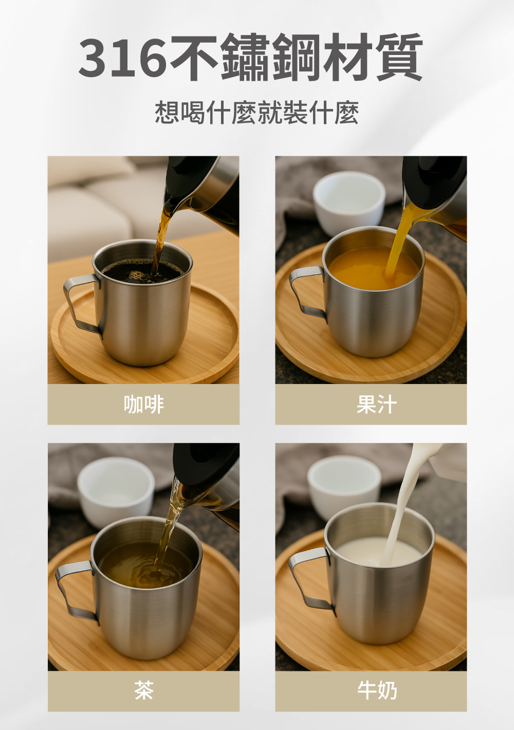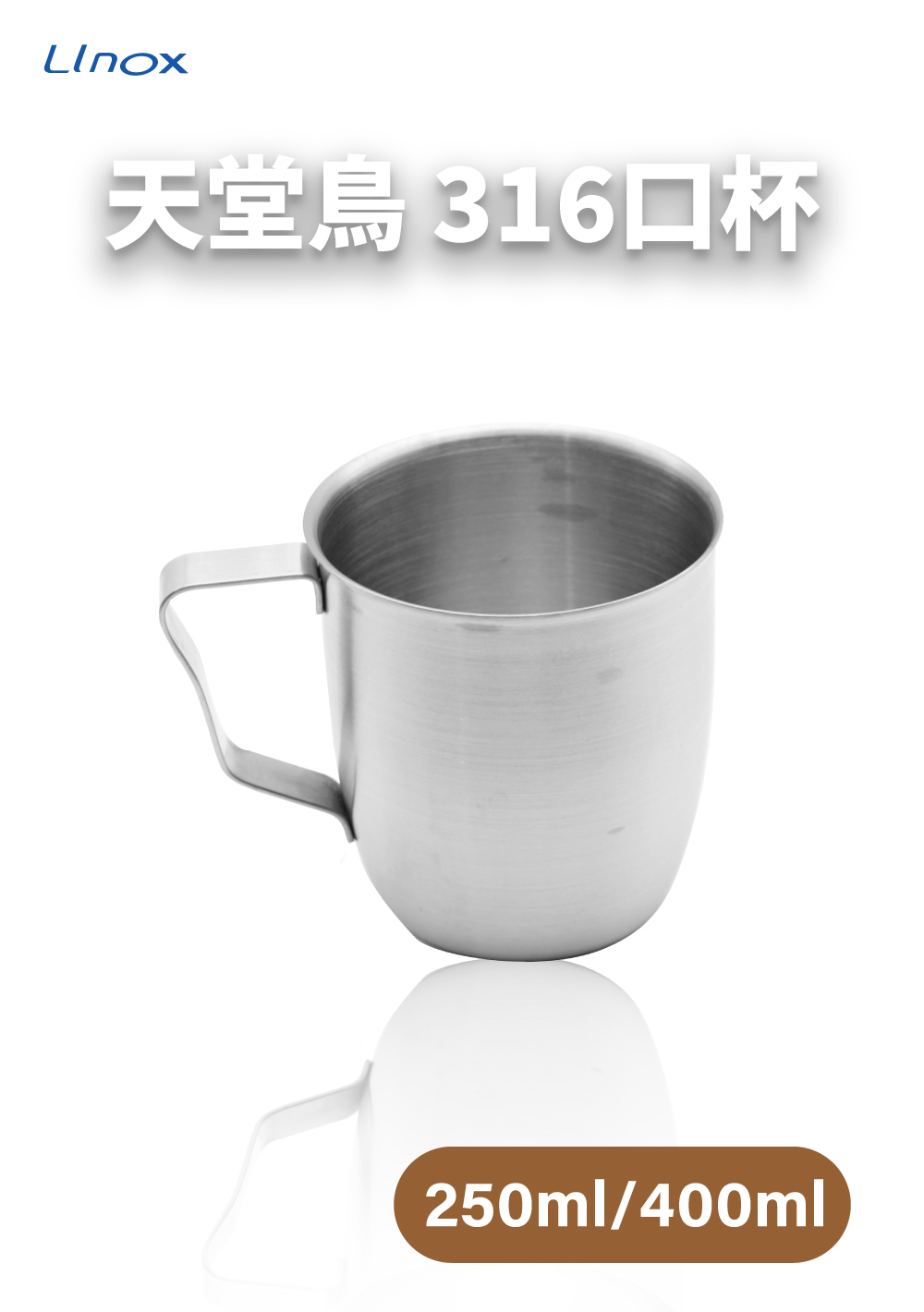 商品規格 品名: 天堂鳥 316口杯 型號: 66-CH07 數量: 乙入 尺寸: 口徑7cmX10.5cmX8cm 容量: 250ml 重量: 125g 材質: 316不鏽鋼 產地: 中國(臺灣監製) 商品規格 品名: 天堂鳥 316口杯 型號: 66-CH08 數量: 乙入 尺寸: 口徑8cmX11cmX9.5cm 容量: 400ml 重量: 152g 材質: 316不鏽鋼 產地: 中國(臺灣監製)