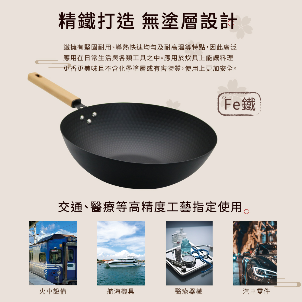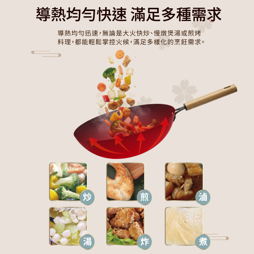 鐵鍋具良好熱傳導力,使用中火即可使食材均勻受熱。