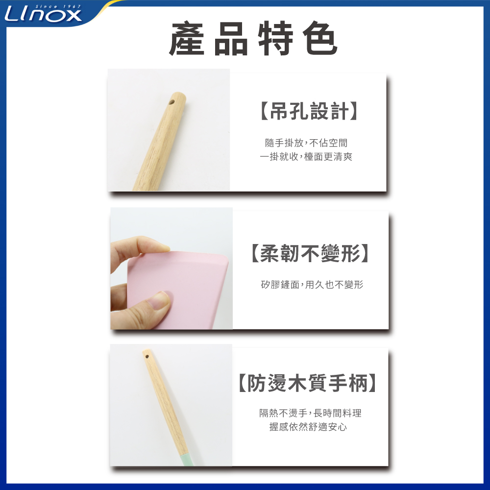✨ 產品特色 ✔ 柔軟矽膠鏟面 ✔ 防燙櫸木手柄 ✔ 一沖即淨・好清洗 ✔ 吊孔設計・好收納 商品規格 品名: 矽膠鍋鏟 粉/綠/黑 型號: 66-SPT-SI01 數量: 乙入 尺寸: 32cm X 8cm 重量: 62g 材質: 矽膠、櫸木 產地: 中國 製造日期:2025.12.1