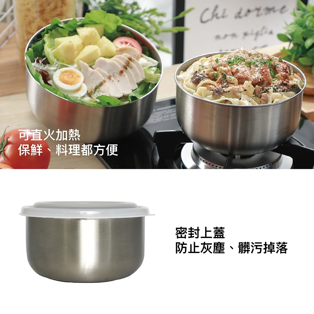 【Linox】抗菌不鏽鋼調理碗附蓋組 1L 1.5L 2L 14 16 18CM 保鮮餐盒 收納盒圓形