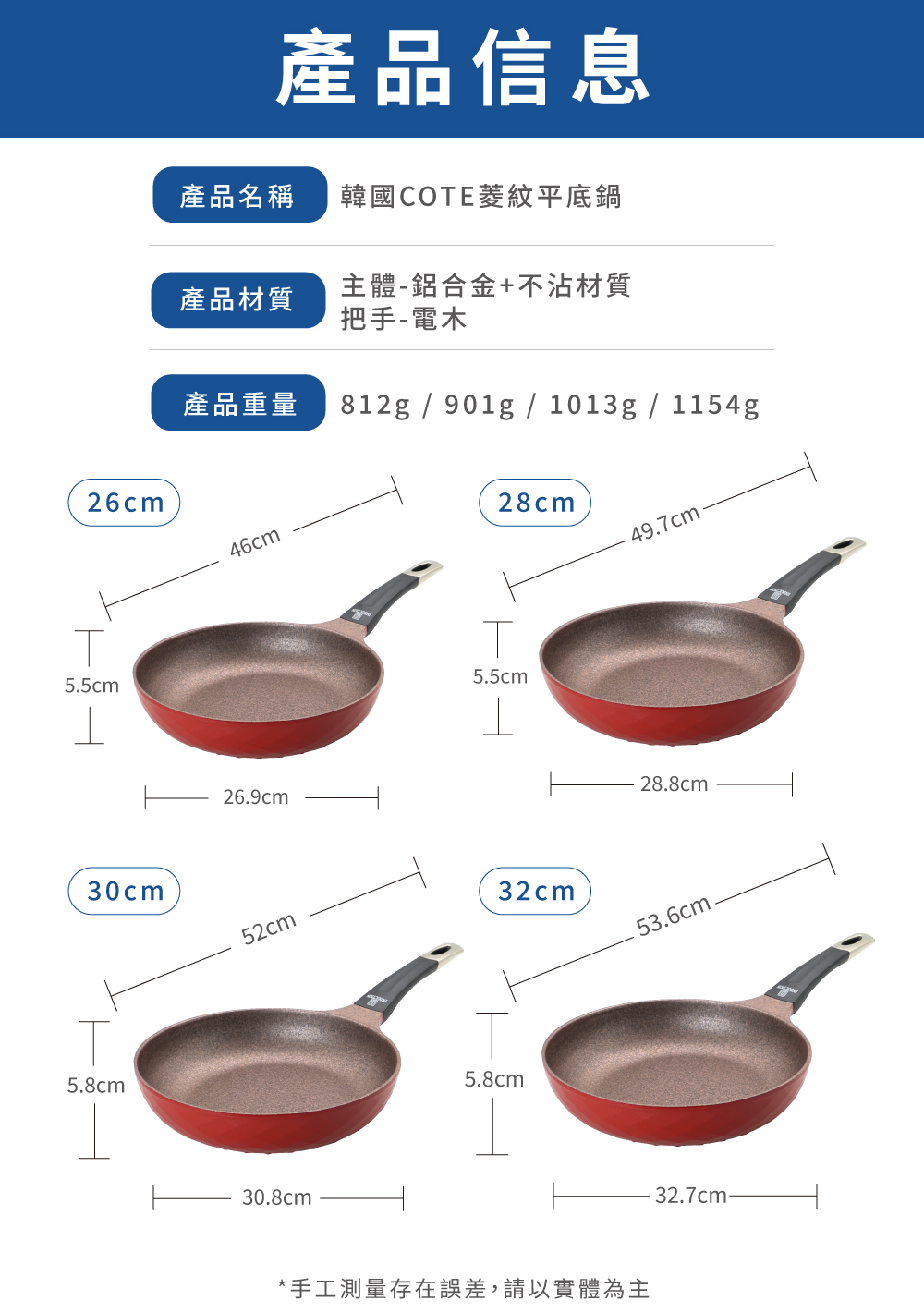 品名:韓國COTE菱紋平底鍋(IH) 32cm